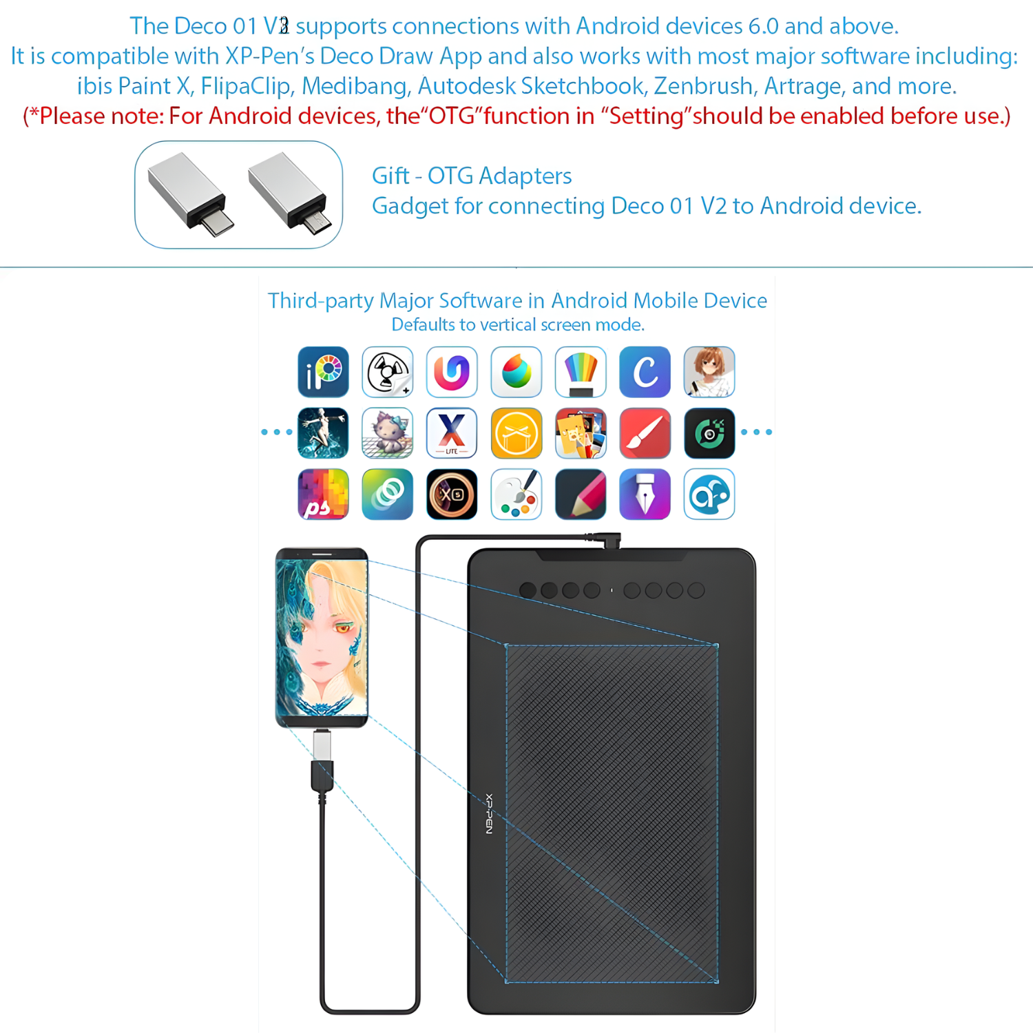 connections with Android devices 10.0 and above. Recommend downloading: "XPPen tools" Android