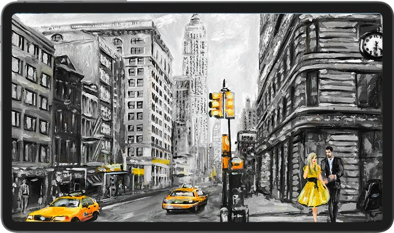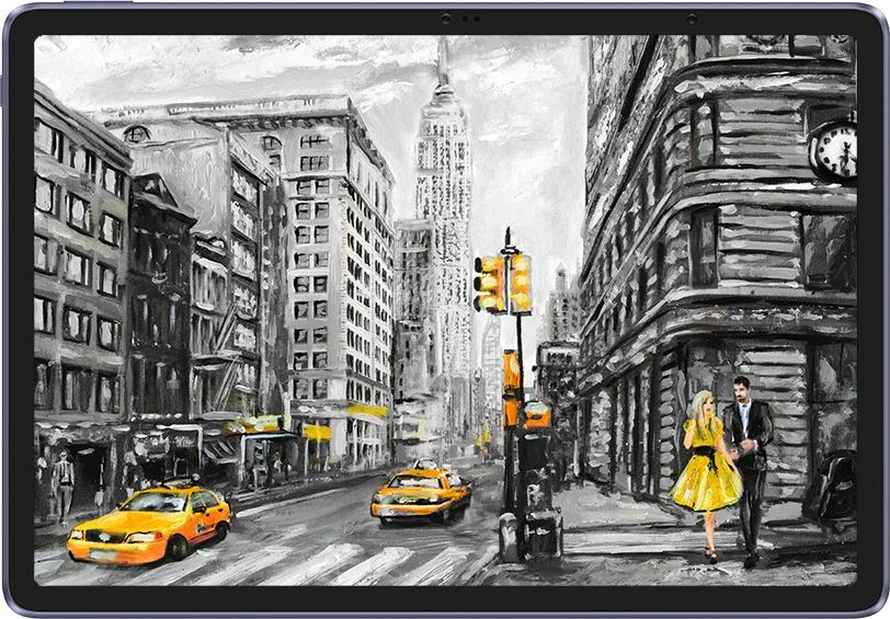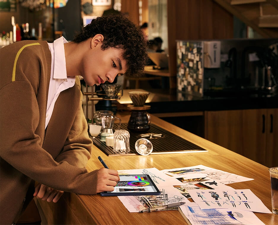 Always ready to capture your ideas. With this standalone drawing tablet by your side, never miss a moment of creativity, whether you’re taking a subway or camping out.